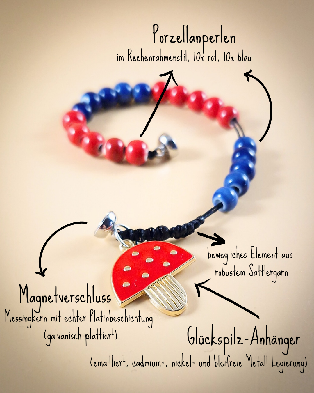Ob zum Schulstart, als Geburtstagsgeschenk oder einfach für zwischendurch – das „Glückspilz“-Armband macht Lernen greifbar und sorgt für strahlende Kinderaugen.